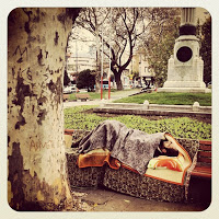 kırçıllı paltolu adamın sokakta uyuduğunu görmüştüm, üstünde yorganı vardı.. battaniye olsaydı sokak olurdu, yorgan olunca üste örtülen orası biraz evdir. yağmur yağarken dışarda evimden okyanuslar uzakta, bir cafe, sıcağıyla evdir.